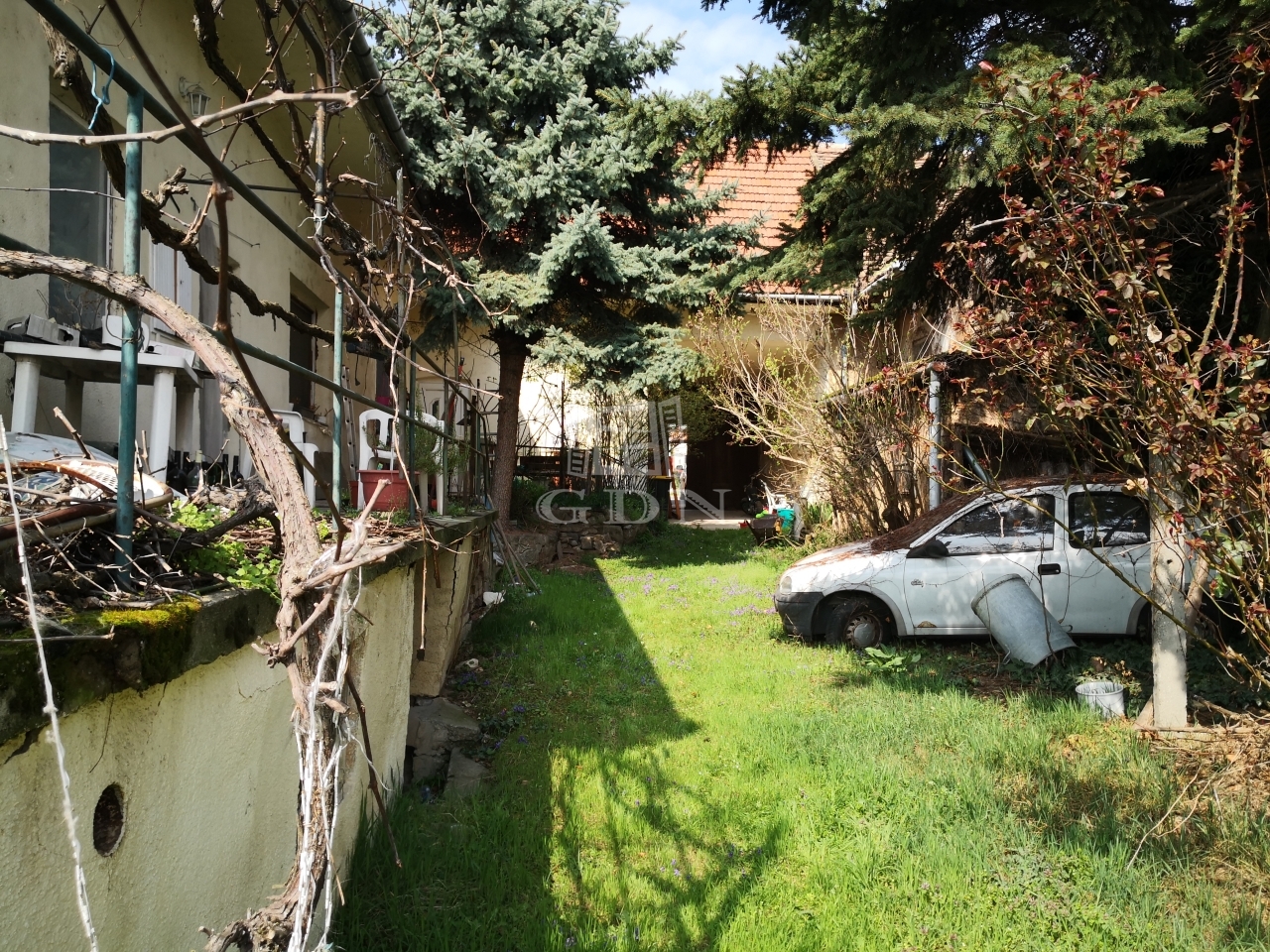 Budaörs Központjában eladó a fotókon látható építési telek, melyen jelenleg egy 150 négyzetméteres bontandó épület található, ami helyi épület védelem alatt áll, ennek feloldási kérelme folyamatban van.
