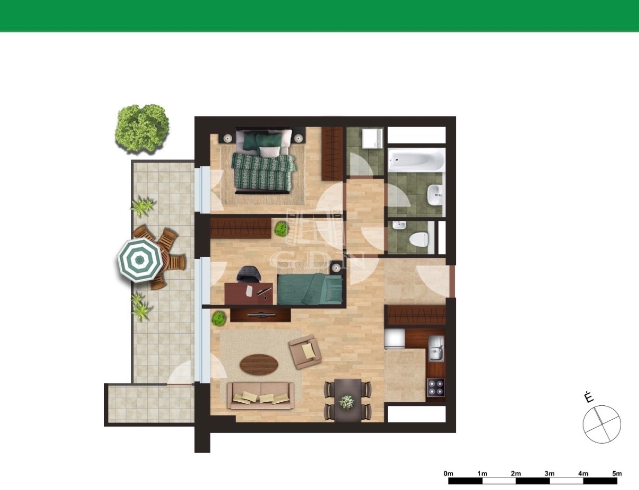 A lakás elosztása praktikus és jól élhető, így hosszú távon is kényelmes otthont biztosít.