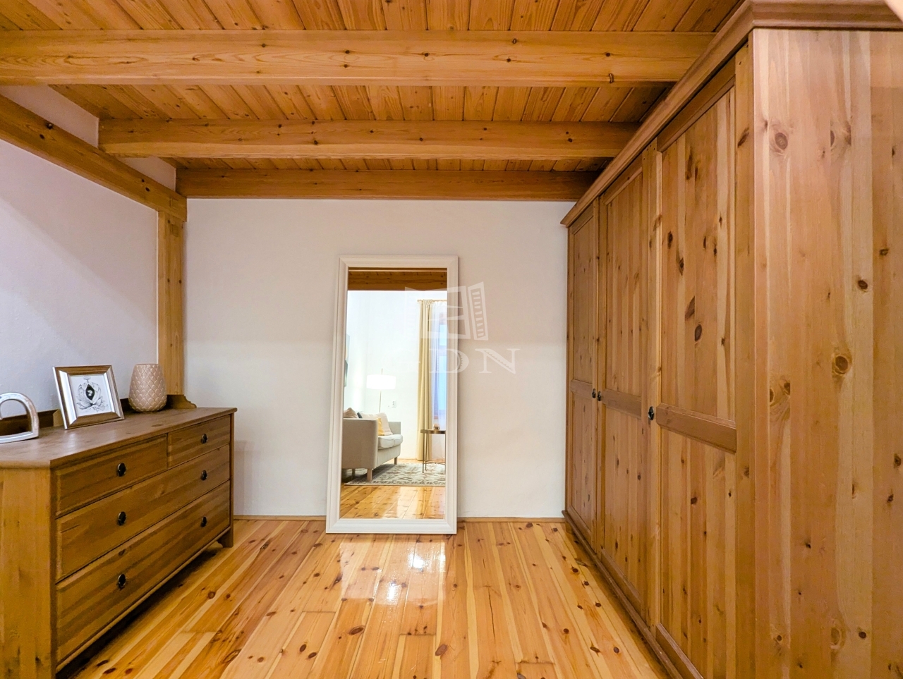 • Burkolatok: lakkozott fenyő hajópadló a szobában, modern járólap a vizes helyiségekben
