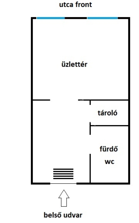 Az ingatlan jelenleg udvari bejárattal rendelkezik, azonban utcai bejárat könnyedén kialakítható, így üzleti szempontból kiemelten kedvező lehetőség. Az elrendezése jól alakítható, bármilyen kisebb kereskedelmi, szolgáltató vagy irodai tevékenységre alkalmas.