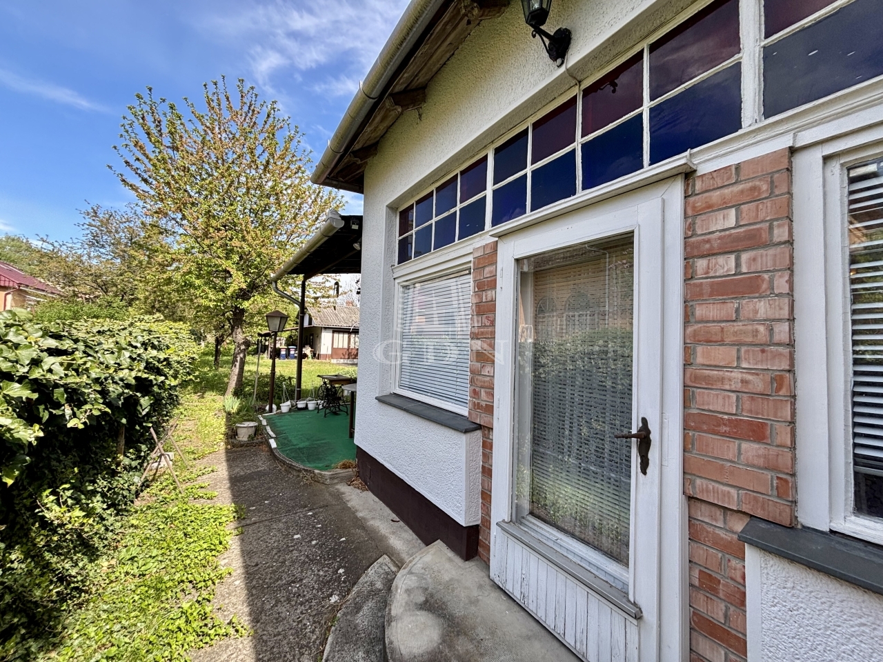 A telek végében egy garázs áll, mely szintén felújítást igényel.