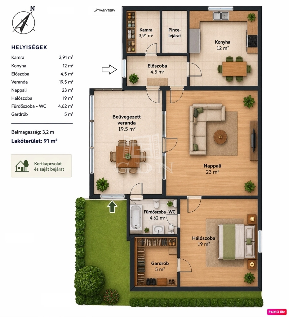 91 m2Alapterület 3 Szoba