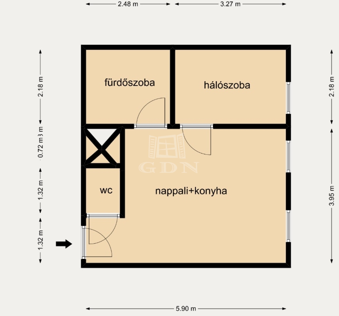 33 m2Alapterület 1 + 1 Szoba