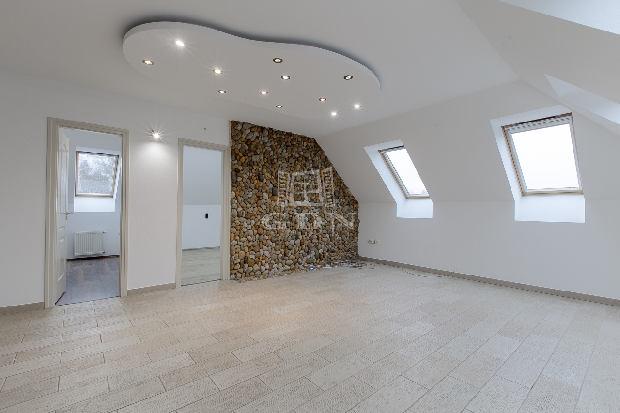 A főépület szuterén (48nm) és az alsó lakás (75 nm), 1980-as években épült, beton alapra 30-as tégla falazattal. 2009-ben ráépült beton födémmel és új tetővel egy külön bejáratú 56 nm-es lakás, illetve mellé épült egy 35 nm-es két állásos garázs elektromos garázskapuval, ami fölött 56 nm-es terasz került kialakításra. Ebben az időben kapott az épület körbe 7 cm dryvit szigetelést és új fa thermo nyílászárókat is.
