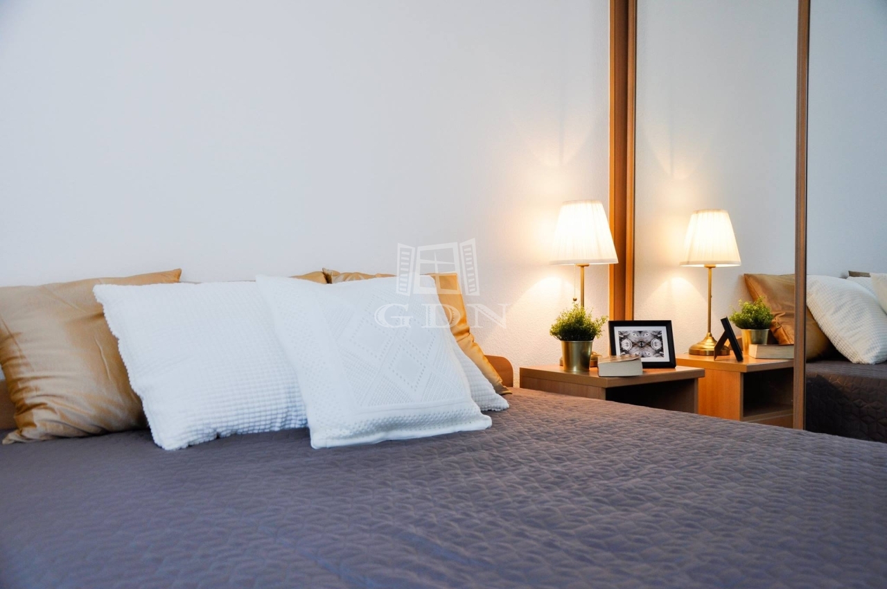 A lakás igényesen berendezett, számos beépített szekrénnyel rendelkezik, melyek, valamint több berendezési tárgy is a vételár részét képezik. Az ablakok redőnnyel és szúnyoghálóval ellátottak.