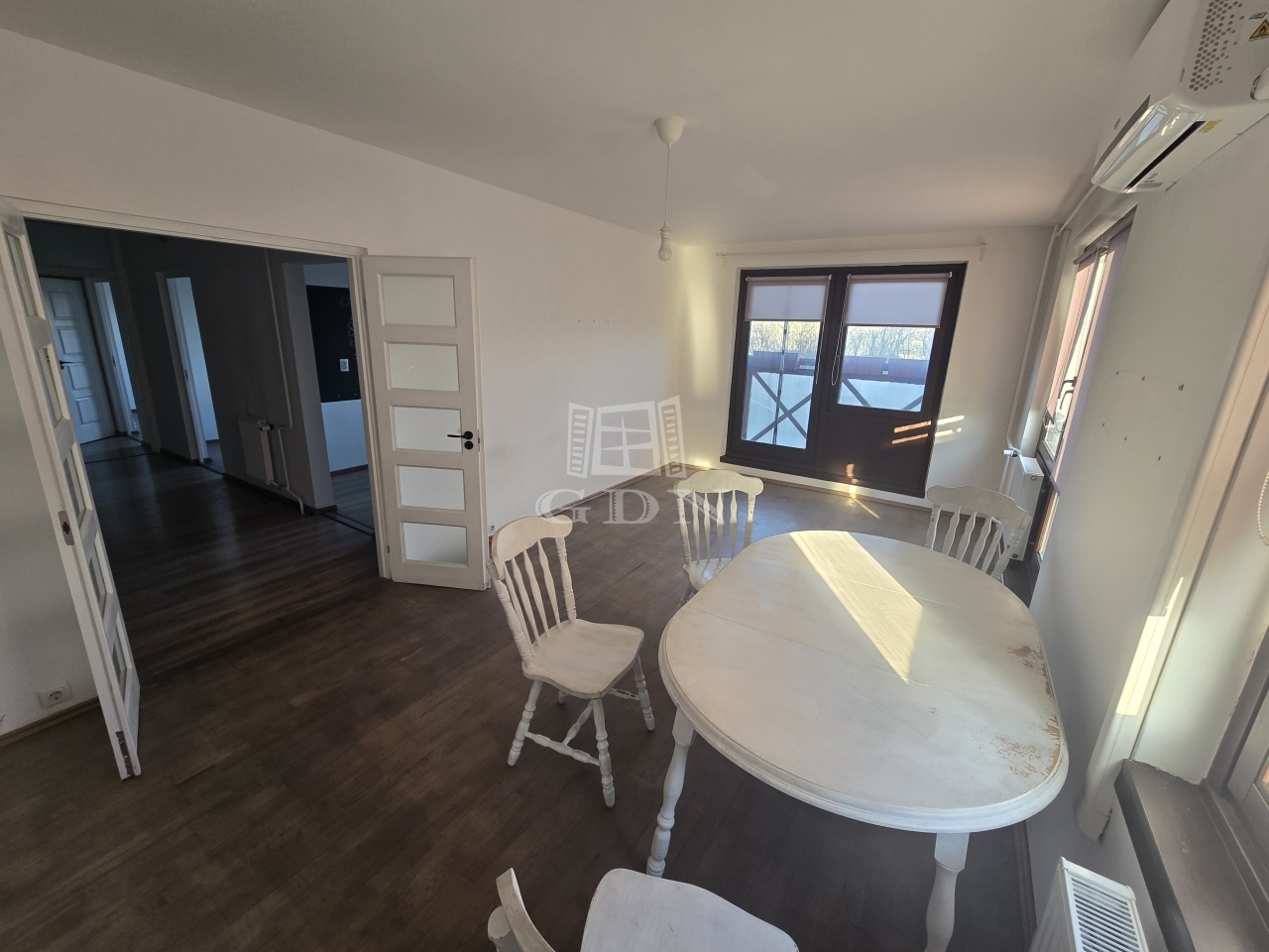 - Felcsiszolt és újraszínezett fa parketta a szobákban