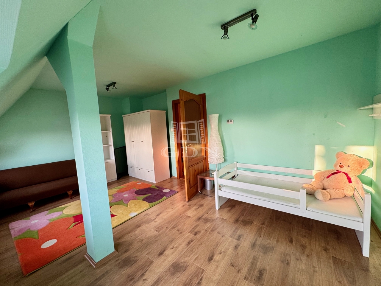 Jelenleg az emeleten két szoba összenyírásra került, ami igény szerint kis átalakítással két külön szobává alakítható vissza, ahogyan az alaprajzon is látható.