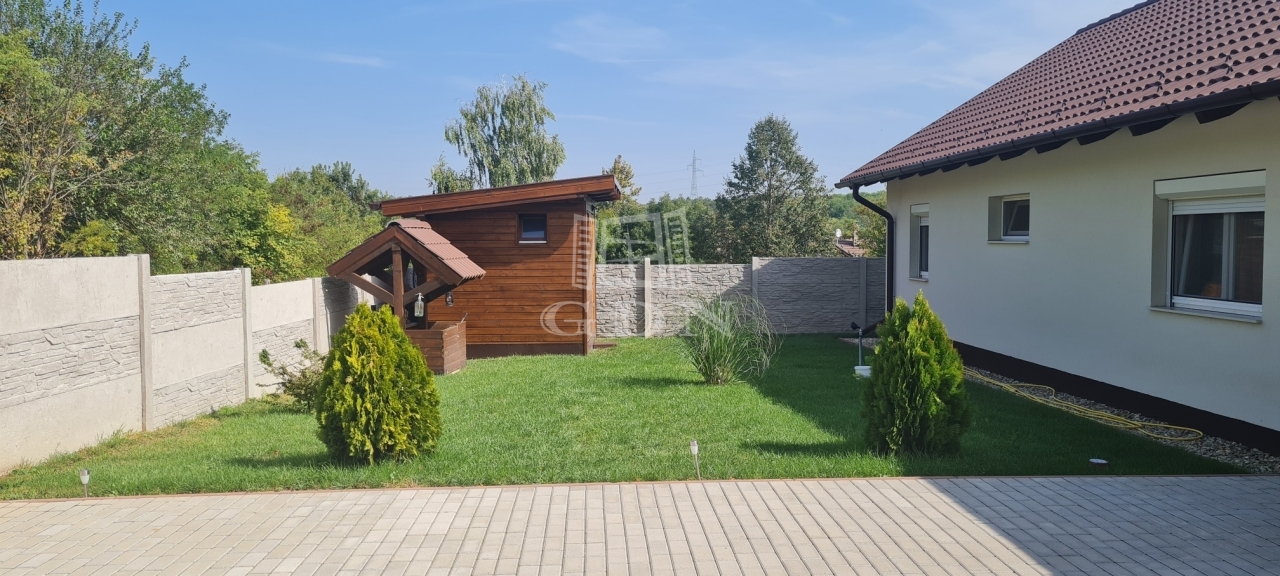 Tartozik hozzá 2 fedett autóbeálló és további 1 felszíni parkoló, kerti kisház, fedett grillterasz és gondosan parkosított kert.